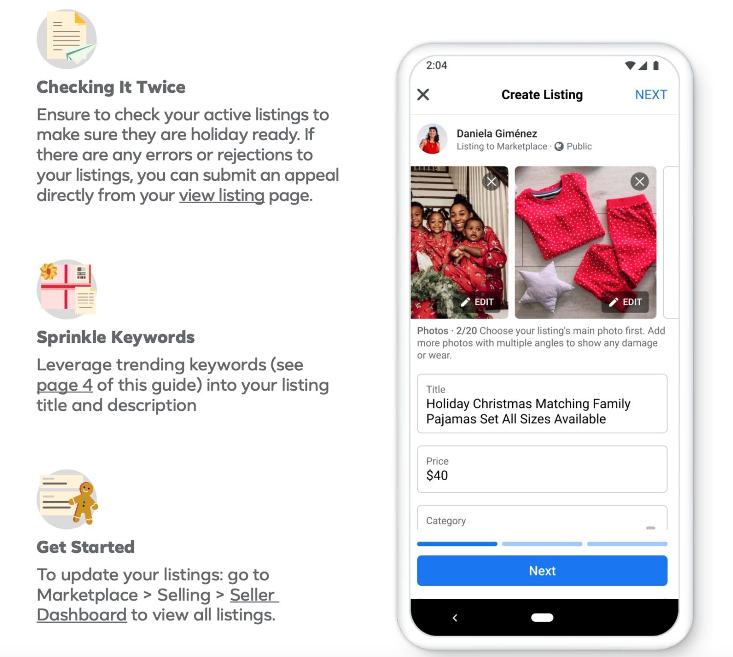 Erreiche gute Ergebnisse im Facebook Marketplace, indem du deine Produktauflistungen optimierst.